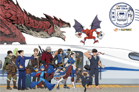 カプコン所属のイラストレーターが「カプコンキャラ×JR東海」をテーマに描く
