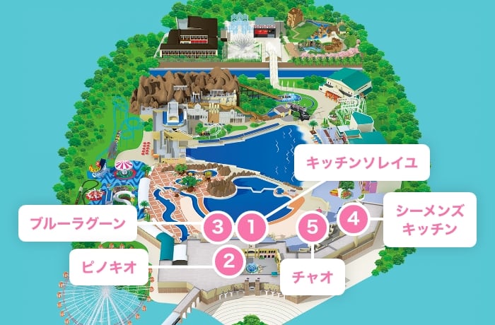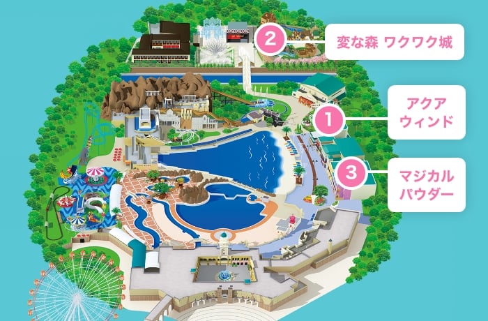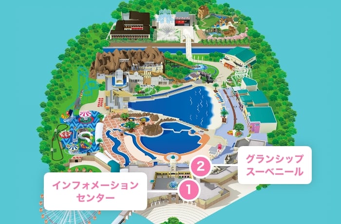 ラグナシア園内の引換場所で特典引換券を提示してください。